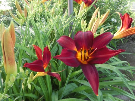 ヘメロカリスが、数えきれないほどの蕾を立ち上げて、開花が始まりました。英名では「デイリリー」。その名前のとおりに、一日花で夕方には萎んでしまいます。奥に見えている白い花は、シモツケです。繊細な蕊が、花の中央からパチパチと立ち上がり、線香花火のようです。頭上にはキーウィがぶら下がっています。こんなに大きくなりました。まだ子供ですけど。 マリーゴールドの苗が、箱いっぱいに頂きました~去年も畑に植えている人が、もっと成長した苗をくれて、すぐに花が咲きました。来年はコボレタネで、いっぱい咲くよと言われていました。春、草取りをするときに、もしかしたら、これマリーゴールドの芽? とは思った気がしますが、気にせずに抜いてしまいました。何故かというと、アハハ、あまり好きな花ではないからです~(笑)確信犯ですね~ところが、またやって来てしまいました。こういうときは、これは縁がある、ということと理解して育てます!マリーゴールドは、根に防虫効果があり、コンパニオンプランツとして利用します。主に畑のほうへ、トマトや、ブロッコリーや、イチゴの脇へ植えていきました。どんな光景になるか、咲いたらまた見て下さいませ。 花ブログランキングに参加しています応援のクリックをよろしくお願いします。