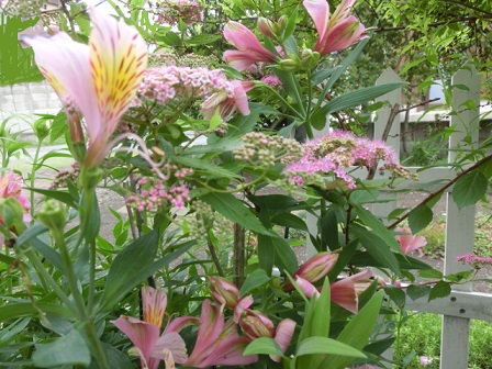 アルストロメリアとシモツケ。ピンクどうしだけれど、同系色が合わさっていい感じ。アルストロメリアの赤もいいですね~切り花にも向いていますよ。 先日、四本のズボンのウエストを広げたお客さん、いままで、お直しに出す、という考えが浮かばなかったそうです。ウエストをいじることで、また穿けるようになった、と大喜びしてくださいました。私にとっては、段階的に言えば一番の容易なお直しを喜んでくれて・・・。今朝奥さんが見えて、旦那様がゴルフ仲間の人に、穿けるようになった、と見せたそうです。うちの近くに上手に直してくれる人がいてね、と自慢して下さったのですって。仲間の人が、自分も頼みたい、と言われて、預かったきたんですよ、と言って持ってこられました。小さな稼ぎの仕事なんですが、こんな言葉が私を励まし、仕事を続けさせてくれています。感謝です。 花ブログランキングに参加しています応援のクリックをよろしくお願いします。