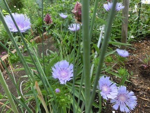 ストケシアが咲き始めました。キク科多年草、年々大きな株に育っています。薄めのブルーが涼しげでいいですね。丈夫だし、美しいのに、そんなには感動しない(笑)、花によるこの違いは何だろう、もちろん好き嫌いはあるけれど、ふつう~。あなたのことはそれほど、という感じ。水曜ドラマ「あなたのことはそれほど」が、終わりました~。この前も書いたけれど、勝手に一人でこの言葉がマイブーム。好きでたまらない相手から、あなたのことはそれほど、と思われていた男が、最後に、あなたのことはそれほど、と思うようになる展開、いい終わり方でした(笑)。変な話が間に入りましたが、ストケシアの咲いているまわりの風景です。手前は、咲き始めたばかりのダリア。後ろは、背が高すぎて全体が入らないアリアム。アリアム。咲き始めの、緑色がまだしっかり見えているツボミの時が可愛いです。午前中は三人のお客さん。お一人は、男性で、ポロシャツ三枚と残り布を持ち込まれて、仕事着なので、みっともなくてもなんでもいいから、スマホが入るように、胸ポケットを付けてほしいとのこと。お客さんは、よく、どうでもいいから、ちゃちゃとやって、といいますが、お金をもらうほうとしては、それがそうはいかないんですよね~。伸びちゃうから、裏地もつけたほうがいいし、ね。次のお客さんは、出来上がったのを引き取りに見えた方。お庭を見せて、とアイスクリームを頂きました。冷やしておいた手作りのコーヒーゼリーを食べながら、庭のベンチでおしゃべり。そこへ、もうお一人見えたので、しばらく三人でおしゃべり。たまたま全員が、ごちそうさま事業のメンバーで、顔見知りですが、三人だけで会う、ということはないので、珍しい機会でした。クリスマスローズと花菖蒲いろいろの色が畑にいっぱいあるから、欲しいものを取りに来ていいよ、と言ってくれましたが、ありがとう、でも・・、とやんわりお断りしました。ちょっと前の私なら、友人を誘って、嬉々として出かけたことでしょう。友人の入院以後、花はなにも購入していません。人生、何があるか分からない、すっきり、コンパクトに暮らさなければ。断捨離、終活、家も庭も実行しています。なにも増やさない、あるものだけを大切に。家に入ったらもう12時、あっという間に午前中は終わりました。 花ブログランキングに参加しています。 応援のクリックをよろしくお願いします。 昨日のアクセス数 1539 昨日のランキング 2 位