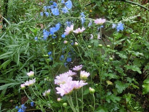ロシアンセージが、暴れています。正しい育て方は、どんなかなあ~。葉も茎も、銀色で白っぽく、空色の小花が調和して、気に入ってはいるのですが、なかなか、まっすぐに育たないで、くねくねとなってしまいます。もっと早い時期に、切り戻せばいいのかな、と思いながら、時期を逸して、毎年同じことを考えています。午前中、庭に遊びに来てくれた人が、茄子とトマトとゴテチャの種をくれました。ゴテチャ? 知らないわ。秋蒔きで、春に咲くそうですが、寒さに強く、その人は、自分ちは、日陰の庭なので、鉢に蒔いて育てているけれど、ここなら、直播で、むしろその方がよく育つ、ということでした。20~30cmの高さになり、色とりどりに咲くので、仏様の花にちょうど良い、と。ゴテチャ、検索してみたら、おすすめ度90パーセントの花でした。そんなに有名なのに、どうして、私は知らなかったのだろう、と不思議です。一年草は、あまり育てたことはないのですが、それにしても、名前くらいは知っているはずなのに、まったく今日まで知らなかったんですよ。画像を見ると、とても可愛い色の多彩な花でした。直播は、私の得意分野、早速、春を楽しみに蒔いてみます。今から、傾聴ボランティアに出かけてきます。大急ぎの更新でした。 花ブログランキングに参加しています。 応援のクリックをよろしくお願いします。 昨日のアクセス数 1661 昨日のランキング 2 位
