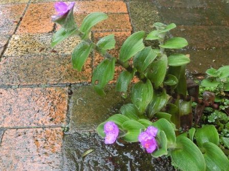 椿の木の根元に植えてある多年草のホワイトベルベットです。ツユクサ科なので、花はツユクサにそっくりです。簡単に根付くので、別の場所にも分けて植えてあります。葉は、柔らかな白い毛におおわれているのですが、今日は雨なので、緑、緑していますね。親子丼が大好きです。先日の金沢旅行のときに、ひがし茶屋街の入り口にある焼き鳥屋さんで、食べた親子丼が美味しかったです。カウンターからご主人の様子を見ていると、えっ、まだ? と思うほど、卵をかき混ぜて空気を入れておられました。私も、家で作るときに、真似しよう、と思いました。土曜日の夜、11時半過ぎからのテレビで偶然見た「さくらの親子丼」。とても面白くてはまっています。古本屋の店主さくらさんが、そこに集まってくるさまざまな問題を抱えた人たちに、親子丼をふるまう話です。親子丼が大きく映るたびに、美味しそう~、と思います。明日は、私も作ろう、と冷凍庫の鶏肉を、冷蔵庫に移しました。ちなみに、さくらさんは、真矢みきさんが演じています。魅力的です。親子丼には三つ葉。雨の中傘さして収穫。はい、美味しそうに出来上がりました。頂きます。 花ブログランキングに参加しています。 応援のクリックをよろしくお願いします。 昨日のアクセス数 1348 昨日のランキング 4 位