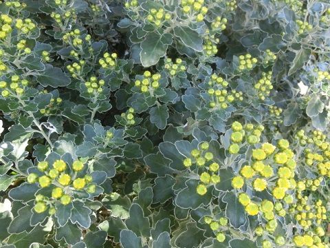 イソギク(磯菊)です。地味な花ですので、こんなふうに集まって咲くことで自己主張しています。この花を見ると、着物の小紋柄みたいだな、とよく思います。みんな同じ考えのようで、菊人形の着物の部分によく使われるそうです。葉の淵が白く彩られているのも、模様になる要素がありますね。ちょっと、らしきものが見えていますが、イソギクには、花弁がありません。なので、もう少しして、らしきものがボワボワと出てくるより、今の、カチッと固くまとまったような花の感じが好きです。朝、緊急エアメールが、川が危険水域に達したので、避難の準備をと呼び掛けています。次の地域は・・・、という中に入っていなかったのでほっとしましたが、もし、避難する立場になれば、何をどうすればいいのか、と、ここらへんは良かったね、と言いながら、近所の人と話し合いました。地球温暖化に伴い、こんな大型台風が発生する頻度は増えるでしょうし、近くのどこそこが停電、というニュースを聞きながら、停電の心配もしていなかった自分の鈍感さに、反省しきりです。大根、少しキュウリ、と柿一個で、柿なますを作りました。美味しくて、これくらいなら、一回で食べてしまいそうです。ナマスは、千切りにされる方が多いと思いますが、私は、普通のナマスは千切りで、柿ナマスに限ってはイチョウ切りです。なんのこだわりだか、分かりませんが(笑)。大根がまだあるので、たくさん作って、おすそ分けしようと思います。 花ブログランキングに参加しています。 応援のクリックをよろしくお願いします。 昨日のアクセス数 1198 昨日のランキング 3 位