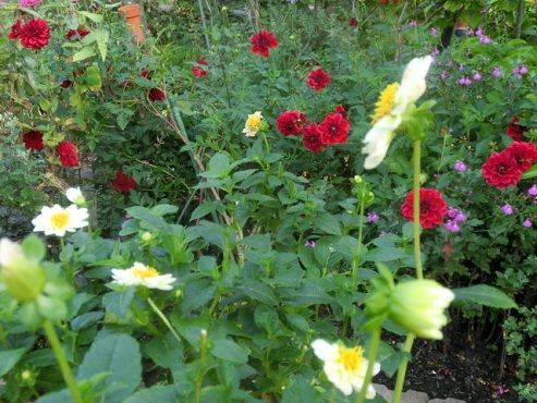 秋風とともに、また咲きだした黄色のダリア。ピンクやブルーのセージ、深紅のダリア、このコーナーだけでも、いろいろな色が溢れています。ダリアは、球根を埋めておけばいいだけで、私は植えっぱなしなので、本当に、手間がかかりません。来年のために、白いダリアの球根を探してみようかな。 お客さんから、こんなものを頂きました。とても気ぜわしい人で、こことここを、こう直してほしい、と早口に告げ、これが入ったビニール袋をドサッと置き、「美味しいから食べて」、といいながら、体はもう玄関の外にいます。それを追いかけて、中から大声で「ごちそうさま~」と叫びます。は~い、と返事が聞こえました。車は、もう出発していきました。あまりに気ぜわしくて、なんで、三袋も、と聞くこともなく頂いてしまいました。感謝。美味しそうです。 花ブログランキングに参加しています。 応援のクリックをよろしくお願いします。 昨日のアクセス数 3109 昨日のランキング 2 位