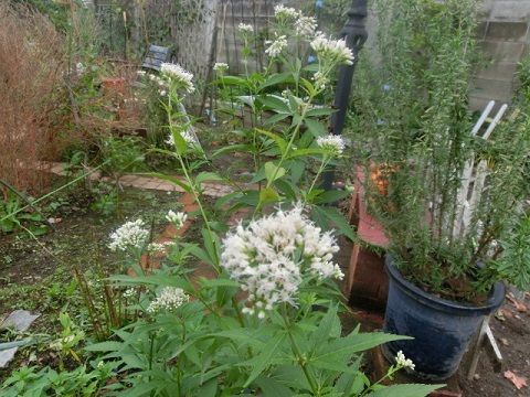 台風の影響で、乱れている庭の中で、オトコエシがしっかりと立っています。オトコエシとは、オミナエシの白をそう呼びます。直立する花が好きなので、これは条件に合っています。(笑)根元からは、芽がいっぱい出ています。いまでも、やや大株ですが、このままここで芽を育て、もっと大株にするか、別の場所に増やすか、ぜんぶ抜き捨てるか、判断に迷っています。今日も、柿を収穫。まだまだあります。田舎でも、柿の無いおうちはあるので、差し上げると喜ばれます。隣家のご主人は、柿が大好きで、わざわざ庭に植えたのに、一昨年も、去年も、今年も一個しかなりませんでした。どういうわけでしょうね~。というわけで、よく消費してくれるので、嬉しいです。お客さんから、小松菜とハナビラタケを頂きました。真っ白な花びらのようなキノコで、汁に入れたり、バター炒めが良いそうです。柿、要りますか、と聞いたら、要ります、ということで差し上げました。たまには、お返しが出来て良かったです。玄関に活けた花を見て、庭にあるものだけでしょう? 素敵~、と言ってくれました。ススキ、オトコエシ、ヒャクニチソウ、イソギク、菊です。 花ブログランキングに参加しています。 応援のクリックをよろしくお願いします。 昨日のアクセス数 1293 昨日のランキング 3 位