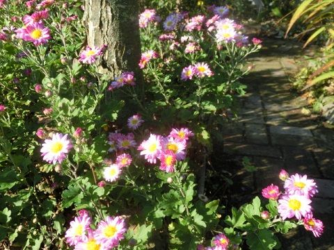 ピンクの小菊が咲き乱れている小道です。出かける前は、蕾だった花が全開になっていました。朝、起きれなくて、陽が上がってから撮影したので、またピンボケのような。薔薇ホットココアも咲きだして、競演しています。ピンクの菊、といっても、中央が白っぽいような小菊です。大学生の孫が、バンクーバーへ旅行していますが、心配性のママとの約束で、こまめにラインで連絡することになっています。「友達に会えた」「ホテルに着いた」「寝る」などの、短いメッセージでも、無事に元気にやっていることが分かり安心できます。半日連絡がないと、こちらから、「大丈夫?」それに対しては、「大丈夫、楽しいよ。今、シアトル」。カナダからアメリカへ入り、友達と二人で、小旅行をするようです。その様子は、パパにも妹にも伝わっていて、安心を共有しているから、ラインって、なんて便利なんだろう、と実感しました。しかも、海外であろうと無料なんですものね~。お城の形をしたレンガです。これが三個あって、この両端用のレンガが二つあります。これらを連結してもいいし、個々に使ってもいいのです。娘がプレゼントにと買っておいてくれました。すごく値下がりしていたんですって。家の形の置物は、なんでも好きなので、喜んで貰ってきました。庭のあちこちに置いてみますが、どうもしっくりきません。本当は、個々にではなく、一列に並べたい。なので、どうしたら違和感なく飾れるか、真剣に考え中です。レンガを積んで、高さを出してから、組み合わせてみようかな、とか。 花ブログランキングに参加しています。 応援のクリックをよろしくお願いします。 昨日のアクセス数 1397 昨日のランキング 1 位
