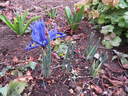 寒い庭に出て、一回り。うん? 紫色がチラリ。二度見しました。お~! ミニアイリスが一輪咲いています。曇り空の下、綺麗な色で咲いています。せいぜい10cmほどの背丈。うちの庭では、クロッカスは増えてくれませんが、ミニアイリスは、大丈夫、毎年、ちゃんと顔を出してくれます。別の場所のも、全部のミニアイリスが、しっかりとツボミを抱えて待機しています。今週中には咲きそろうことでしょう。満開になったら、また見て下さいね。たくさんの野菜を頂いたので、洗って茹でて、一部は冷凍したり、と、下処理しました。今日の一人ランチは、緑色いっぱいのメニューです。ホウレンソウとベーコンのチャーハン。西京味噌汁とアオサ。豆腐とほうれん草のココット。カボチャとレーズンのサラダ。かき菜の胡麻和え。ブロッコリーのサラダ。ごちそうさまでした。 花ブログランキンに参加しています。 応援のクリックをよろしくお願いします。 昨日のアクセス数 1667 昨日のランキング順 6 位