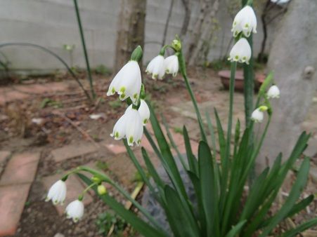 スノーフレークが咲いています。地味な花だけれど、このお洒落な模様!白い花びらの先に、グリーンの点。素敵だな、と思われませんか。花の中は、こんな感じ。さっぱりと清楚。真ん中の緑の雌しべを囲み、六本の黄色の雄蕊の彩りが素敵。別の場所にある、これが本体。球根植物ですが、すぐに増えるので、地中で押し合いへし合いになるから、時々、株を分けたほうが花付きがいいようです。昨夜、Iさんから、「また、明日お願いします」と電話。うちの近くの医院へ、ご夫婦、おばあちゃんの三人でかかっていて、大人しいおばあちゃなのですが、認知症が始まっていて、待ち時間が少し大変。時間のかかる山から下りてくるIさんに代わり、朝、医院の予約ノートに名前を書くことを、自分から申し出て、それが続いています。朝、7時15分に行って、大体 5,6番目なので、三名分を記入しておくと、三人が11時に来ても、すぐに診察してもらえるそうで、とても喜んでいます。感謝されるのですが、私にとっても良いことが。まず、月曜日はゴミ出しの日なので、ゴミ置き場から100歩ほどの医院なので、何の手間も要らず、ゴミ出しもサボれません(笑)。(寒い朝などは、今回はいいか、とサボることも)今朝、いつもの時間に行ったら、張り紙がしてあって、「コロナウイルスのため、予約時間は 8時半から」。決めたことは、真面目にやる方なので(笑)、毎日6000歩のノルマは、ずっと続いています。朝ドラを見てから、二度目の医院へ出発。これで、二往復したので1200歩稼げました。一往復600歩、それほど、近いんですよ。などの良いことがあります。私にとってはちょっとのことだけれど、すごく感謝されることも嬉しいですね。 花ブログランキンに参加しています。 応援のクリックをよろしくお願いします。 昨日のアクセス数 2205 昨日のランキング順 6 位