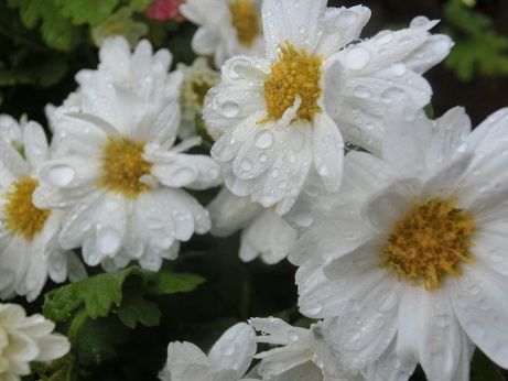 今日の小菊は白。雨が降ったり止んだりの寒さの中、優しげです。