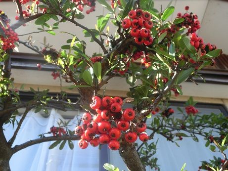裏に植えてある南天の隣で、これまた赤い実の植物、