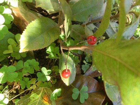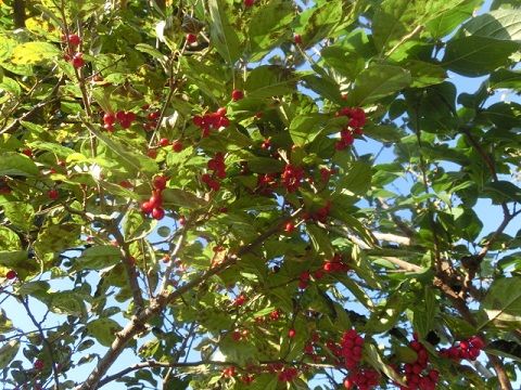 ウメモドキの実が、引っかかっているのかな、と思ったら、これは鈴蘭の実。