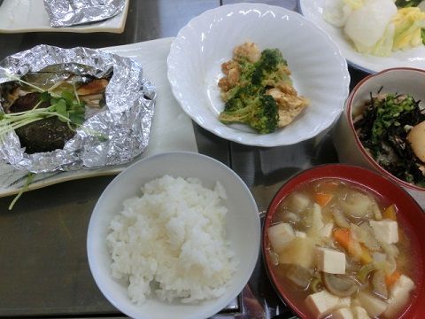 鮭のキノコのホイル焼き、ヒジキの煮物、