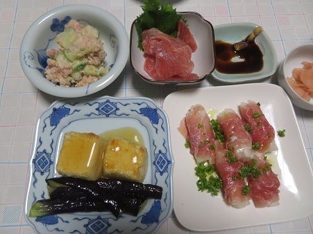 ポテトサラダ、豆腐揚げ出しと茄子、