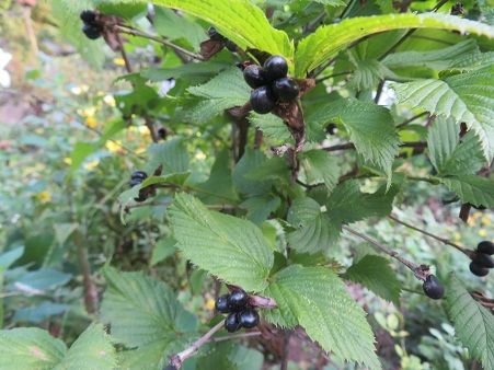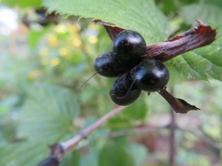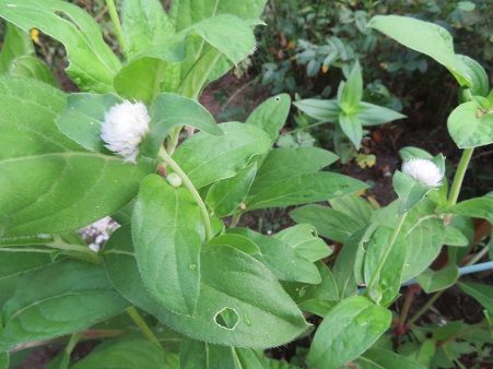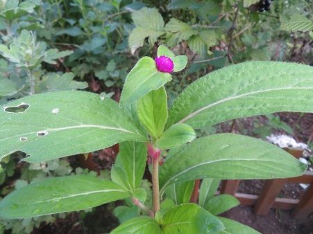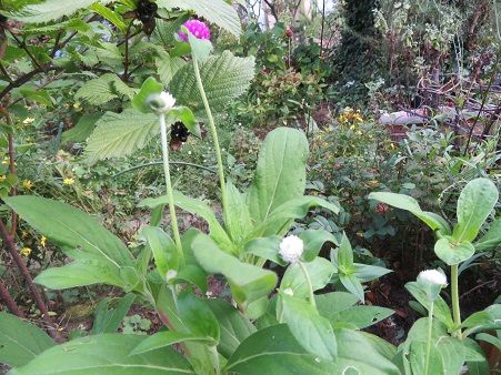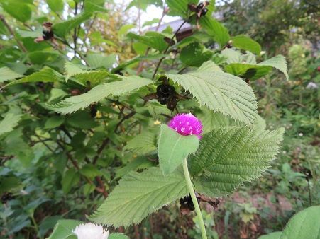 千日紅。白ヤマブキの黒い実とお喋り中。
