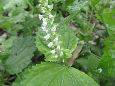 庭の隅の青紫蘇が花穂を伸ばしています。