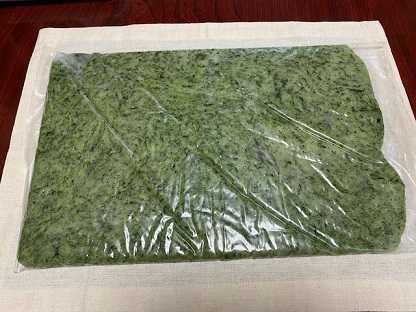 美しい緑色のノシ餅を差し出します。