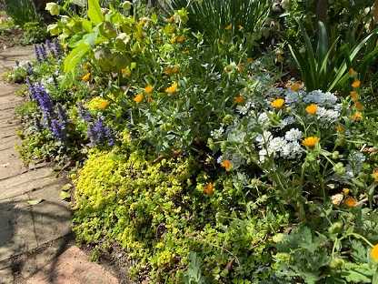 アジュガの咲く小道です。