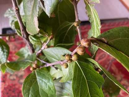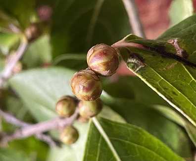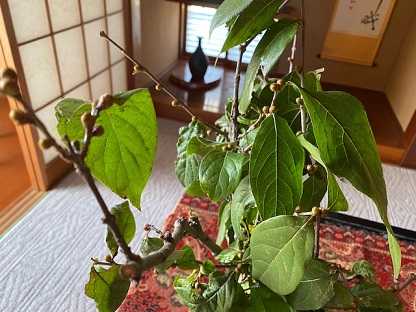 下に落ちた枝をみると、蕾が付いています。