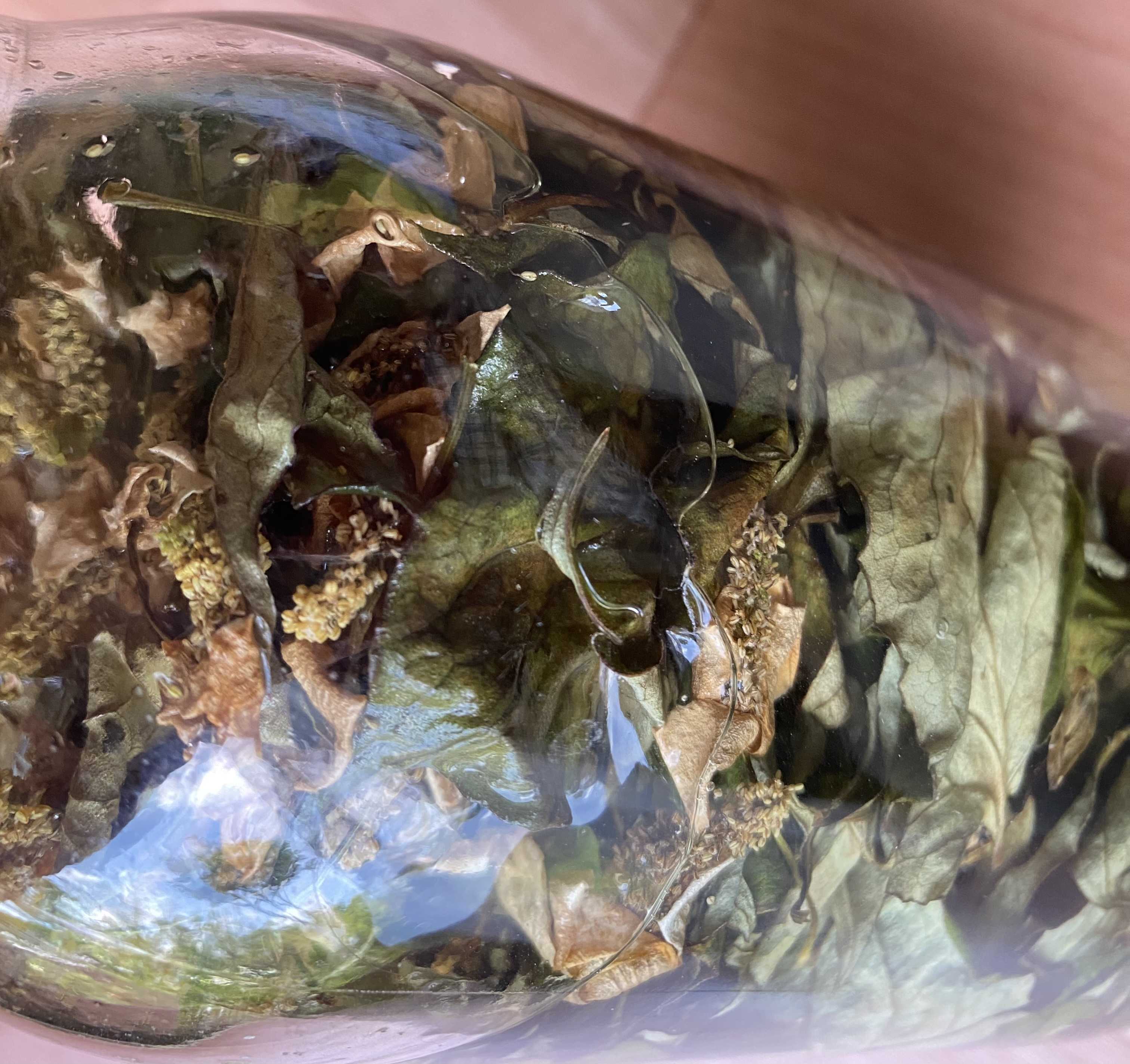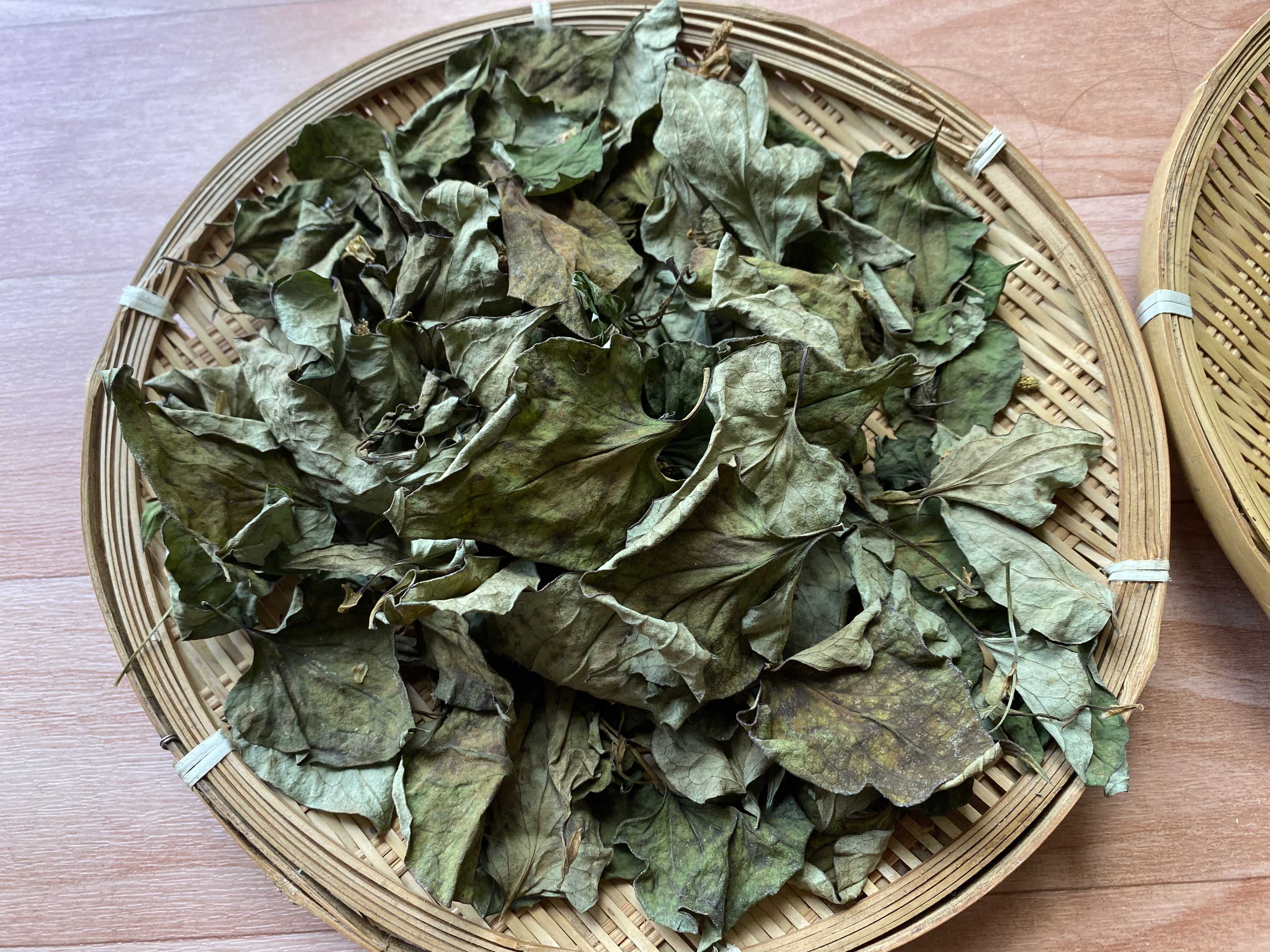 からからに乾いたドクダミの葉と花。