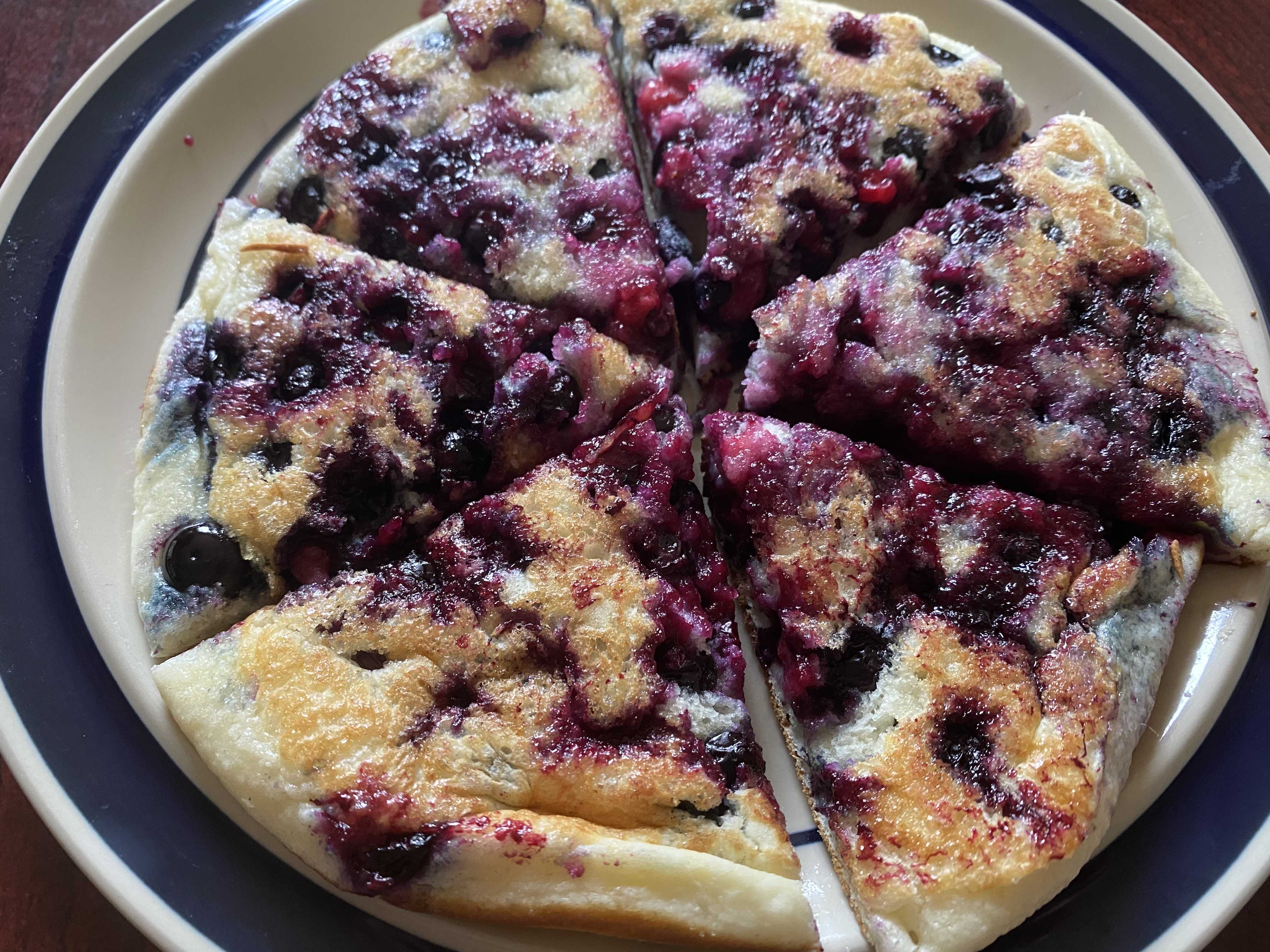 たっぷりのブルーベリーを入れて、ホットケーキを。