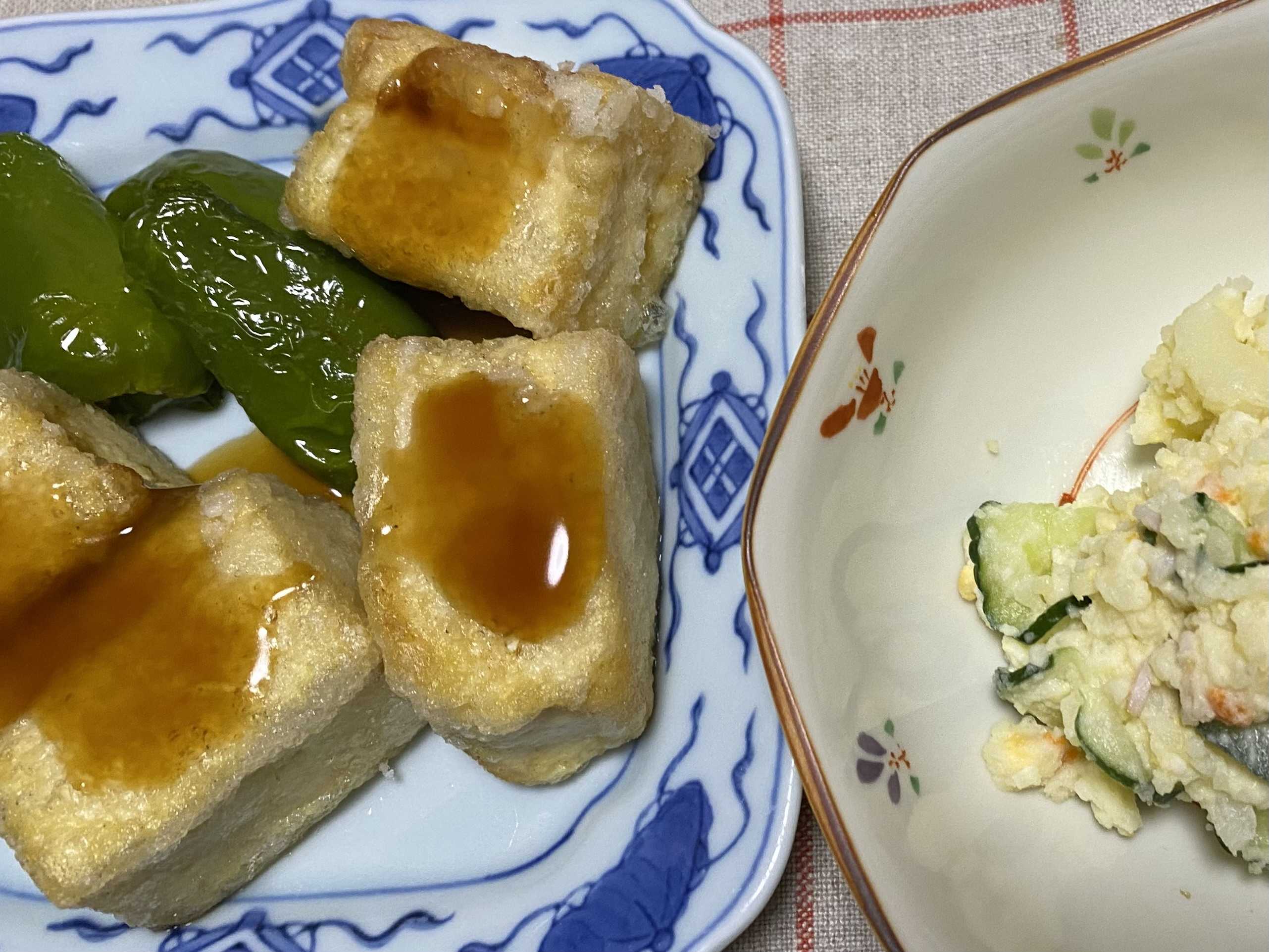 孫のリクエストは、油淋鶏、揚げ豆腐、タコマリネ。