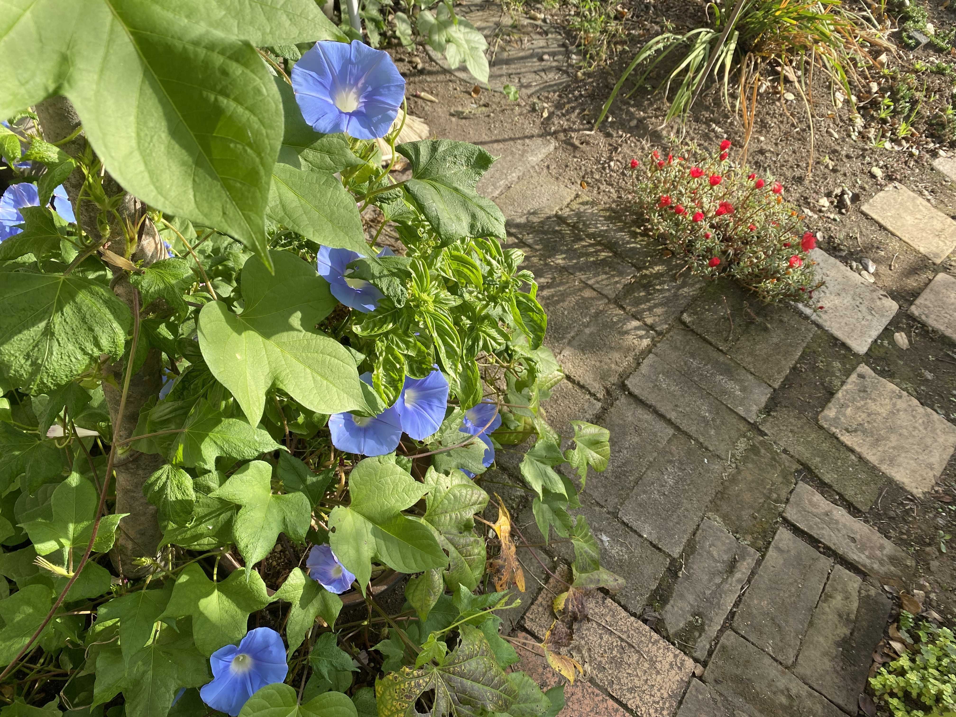 右奥に見えているのは、松葉牡丹。花束みたい。