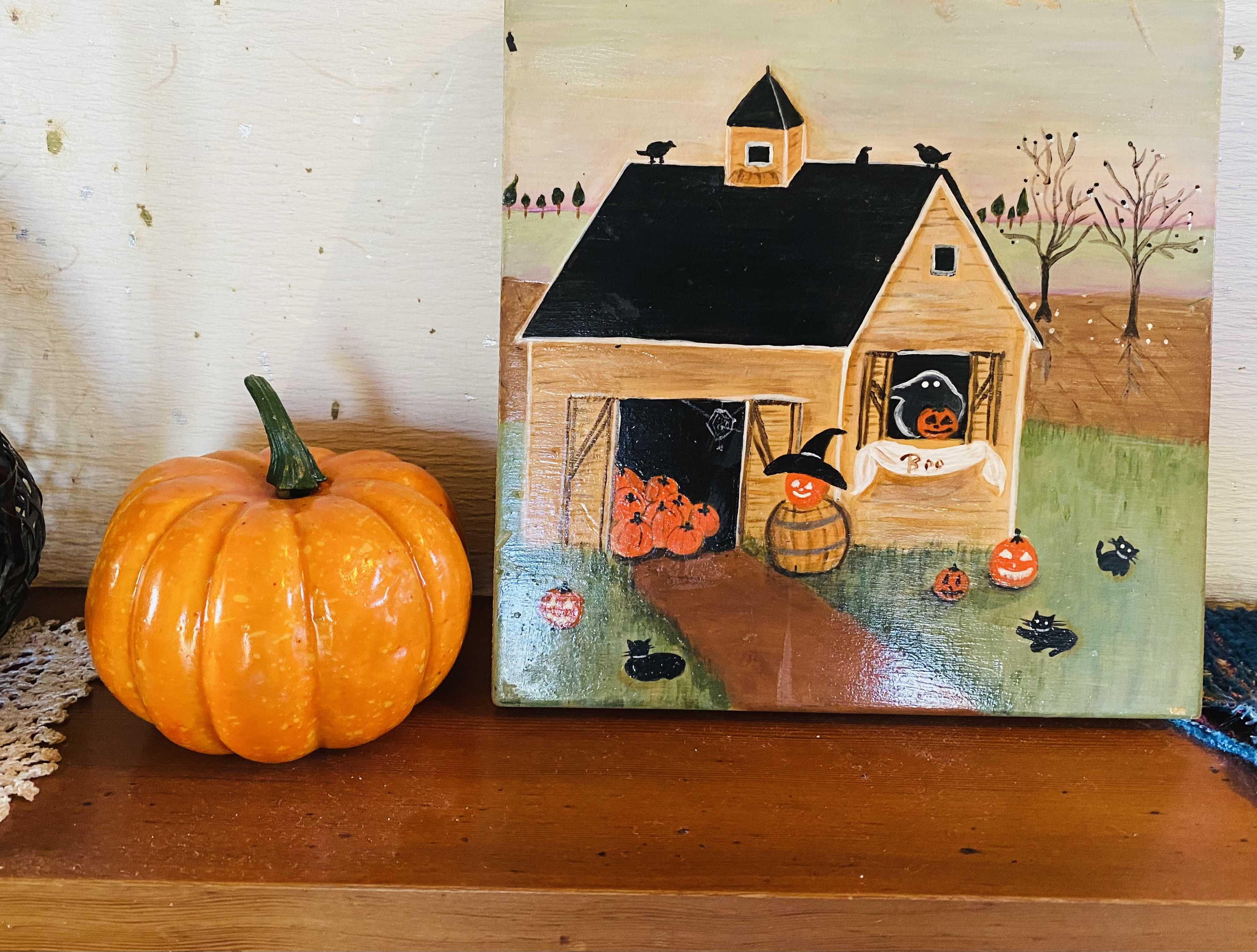 右の小屋の絵は、何年も前に描いたトールペイント。