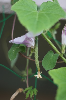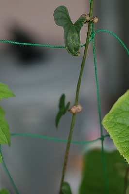 ふと気づくと、大きく育つ、、あなた、誰??この鉢は三つ葉の鉢だったはずなのに、、なぜか植えた記憶のない成長著しいあなた、、。気になるので当分、育ててみよう、、。それにしても、成長著しいおかげで、三つ葉は全部枯れてしまいました。(涙)今年は今ひとつの緑のカーテン。来年こそは、大きく育てよう!と今から決意表明!