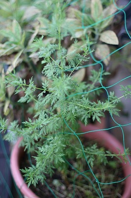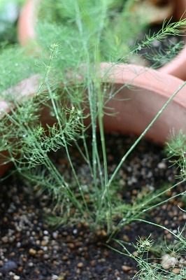 大きくて深いプランターにアスパラガスを植えているのです。今は、こんなわさわさ、とした風情ですが、いずれきっと、美味しいアスパラガスが食卓を彩ってくれるかな、なんて。