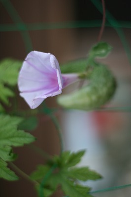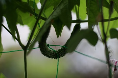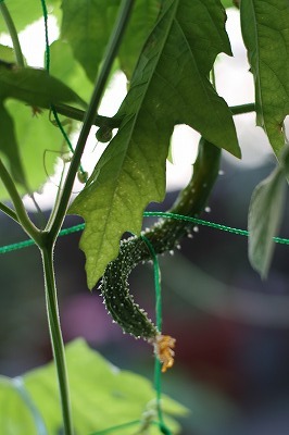 きゅうり、朝顔、ゴーヤなど、つる性のもの、たくさん植えています。緑のカーテンが目標だったんですが、、難しいですね。緑のカーテンどころか、緑のレースにもなっていません。キュウリが、花が咲いて実になっても、小さいまま枯れてしまうのです。キュウリって、難しいですね。。