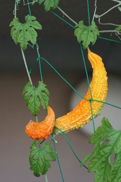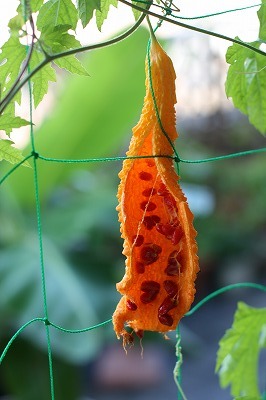 うわー!やってしまいましたよ。毎日見ている筈なのに、またゴーヤが完熟です(汗)ま、種の周りは甘いし、生でかじれるので、ビタミンC補給にぴったり。うん!よし!としましょう。