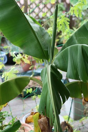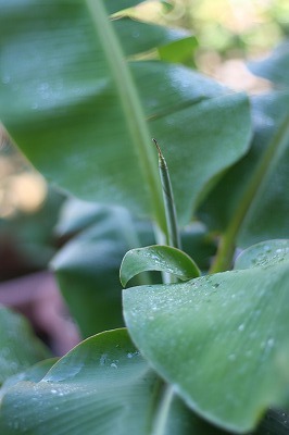 久しぶりの雨ですが、大雨、というほどではなく、ちょっと湿ったかな、、というぐらい。なので、バナナは元気がなく、少し葉っぱがだれて、元気がありません。もう少ししたら、株分けしなくては、、。