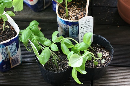 バジルもすくすく育ってきました。そして、、先日、1ポット105円の苗を発見!これから植えれば、秋に楽しめる~と、2つ買ってしまいました♪。時期をずらして植えると、長い間収穫が楽しめてうれしいのです♪そろそろ、他の秋の野菜たちも育てていかなくちゃ!とは思うものの、、日差しは夏、、なぜか、種まきの気分にならないのが、困ったものです。