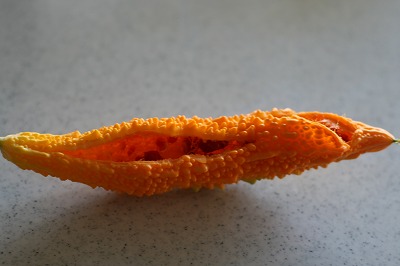 熟しすぎて、割れてます。中は、赤い種。赤い種の周りは柔らかくて、甘くて美味しいですっ!ゴーヤは、、熟れて割れるってことは、柔らかい、、と思い、食べてみました!そんなに苦くはなく、食感は、梨、というか、ヤーコンというか、うーん、何と言うか、いい食感ですよ。苦いのが嫌な人は、完熟にして食べるっていうのも、ありかも!です。