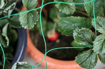 ベランダの鉢植えでも、しっかり育ってくれますよ。苺は、完熟した実が、簡単にすぽっととることができます。甘いことといったら!もう少し近寄ってみましょ!ね、真っ赤に熟れているのが分かりますよね。この後、私のお腹に納まったのでした。