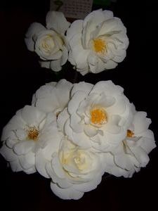 今夜は雨が降って気温が低いですーー。さ・寒いーー。さっきまで暖房入れてました。寒いし、、洗濯物が乾かないので~ 雨が強く降る前にアイスバーグの花を摘みました♪器も良くないし、真っ白だけだと寂しい( _ _ )..........o ミニバラも摘んで来ましたが・・やっぱり器も大事ですね(汗)こんな事して遊んでる私って、幸せですね(笑)今日、出掛けに金沢のチケットが届きました~♪・・・ちょっと不安も過ぎりますが、、きっと行けるでしょう~オペの可能性があるとしたら、今週の金曜日か来週になるそう。。どうぞ、オペしなくてもいい方向になります様に~!!トラウマが蘇りますーー。MRIの説明があるかと思いきや、先生がいつ上がって来られるか判らないということで待っててもしょうがない、と、時間が出来たので髪を切りに行って来ました♪酷かった白髪も見やすくなりました~♪なんだか億劫で、延び延びにしてました。さっぱりです(*^ワ^*) 忙しい日々も頑張れます~(*´∀`*b)