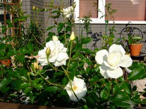 はぁ。。また雨が降るんだぁ。。自然には逆らえませんが、ガーデニング初心者な年に、、7月は長雨。大雨。夏は短く。日照不足。秋も雨が降らなくても夜露。嫌になっちゃいますぅ~。ここでぼやいていても仕方ないですね。気を取り直して、お昼に撮ったぉ写真載せてみました♪殆ど剪定ってやつをしないで自然体のフォーエバーとミニバラ。避難させて来ました~何が悪いのか・・届いたときに、ちらちらとしか咲かなかったプチダリア。やっと咲いてくれるみたい♪休むことなく、ずっと毎日咲いてくれてる昼咲き月見草☆ペンダンス?ん?ホワイトランタナ。。花色が変わるのかな? これって、、何て植物なんだろぉ~?フラワーショップで買ったときは、とっても細っこくて小ちゃかったんですが~今は、巨大化してます(汗)こんなになるとは思いません、知りませんでした。名前がわからないから、冬の管理もわからないわぁ~どなたかわかる方がいたら~教えてください~!