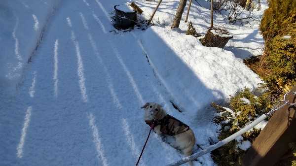 どうやら、だんなさん、今日はずっと居るようです。昨日、パチパチ負けたよう(^^;有休消化で明日も休みみたいだし。朝からソファーに横になって映画。もう2本目です!観たい映画じゃないと、私は暇ですね(^^;掃除機かけてると、それ退けてかけたらって言って来たり!毎日退けなくていいから!うざい!笑今朝のお散歩、ゴムギちゃんに会えました。エイミーを見つけて、クンクン言ってくれてました♪すごく久しぶり~(^-^)コムギちゃんとは、鼻と鼻付けてご挨拶してます♪コムギちゃん飼い主お父さん、雪割りしてて、道路いっぱいに雪の塊が!コムギちゃん飼い主お父さん、普段あまり雪かきされて無いんですよ。けっこうご高齢なのに、朝早くからお仕事行かれてて、なかなか出来ないのかな?今日は、お休みだそうで頑張ってました!もう少ししたら、スニーカーで歩けるかな♪もう降らないといいです。まだまだ、日陰で雪かきして無かった道は、雪が残ってます。