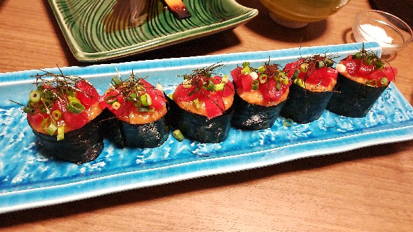 一昨日、はなパパから電話♪土曜日空いてる?って。じっしゃんのお誕生会しようって♪車で10分くらいの、はなパパ馴染みの居酒屋に行って来ました。海鮮物は、すごく新鮮なお店だけど、ちょっと高いんです。いいの?でした。ちょうど、電話くれた日、お店のママさんが車買ってくれて納車だったようです。だからかな?どれもこれも美味しかった!エビマヨサラダが特に♪写真は撮らなかったけど。唯一、お店からの最後のシメにと、マグロの軍艦?すごくきれいなので写真撮りました。私は、食べれ無いけど、好評でした♪だんなさんに、お店から日本酒のプレゼント頂きました♪いいお誕生日になりましたね(^-^)帰りは、代行で帰って来ました♪すず、私が仕事に行ってる間に、じっしゃんにプレゼントのすき焼き用のお肉を届けに来たそうです。お手紙と一緒にね(^-^)今年は、日本酒じゃ無くてお肉なんだね。今日の買い出しで買って来て置いた、函館和牛。北見枝幸の船頭さんに送ります。毛がにのお礼です♪すずん家から貰ったのより高級なお肉です。笑すず持って来たお肉、値段付いてたからね~!笑お♪来週のMUSIC FAIR、徳永さんがご出演です♪また、レイニーブルーをコラボですがね。確かに、色褪せない名曲だけど、....ん?LOVE IS ALLも?