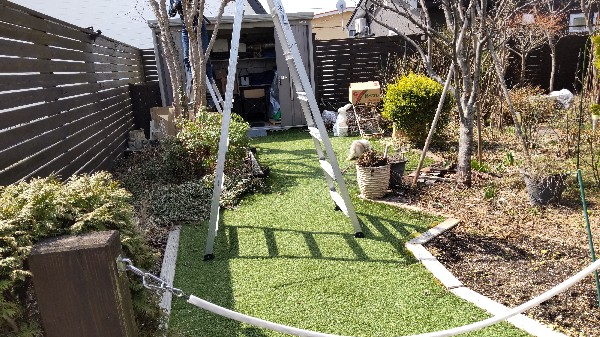 スモークツリーは、バッサバサ切ってもいいんですが、絡ませてるクレマチスも切ってしまってる。毎年言ってるのに(^^;アルプス乙女(姫りんご)は、今切ったら花咲かないよね?で、横に植えてるチューリップを踏み付けてる。全く見ない(-_- )ま、毎年の事だけど。年々大きくなって行く木々。あと何年かしたら、バッサリ切って貰わないとですよね。今年は、庭の奥の方のエゴノキやモクレンなどは、去年造園屋さんに切って貰ったので、この2本だけ?エゴノキは、切らないと駄目だって!毎日、まだ付いてる姫りんごの実をヒヨドリさん食べに来てたけど、がっかりするでしょうね!キリのいいところで入って来たけど、ヒーヒー、よろよろしてます。私の方がタフ?笑私とエイミーは、今日はまったりしてます(^-^)