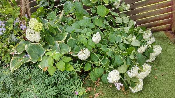 今日もお散歩から帰って庭仕事。ノイバラが室外機にかぶさって来てて、だんなさんに切るように言われてました。フェンスから飛び出ている枝もあったし。他にも気になった枝や今日もノコギリソウ抜きして、さっき入って来ました。まだまだ切らなきゃなんだけど、少し熱中症みたいな感じになったのでやめました。あれ?なぜにここに?植えた覚えの無い所にブローディア?そしてそして!去年挿し木して秋に地植えした紫陽花 エンドレスサマーが咲いてた!ノコギリソウに覆われてて気づかなかった。で、ご本家も咲いてるよね?咲いてました。アナベルに覆われてるし、クロッカスローズが大きくなり過ぎて、全く見えないわ。って事でお家飾り♪この紫陽花は、いつ何処で切ってもいいという手間いらずなんです。また、挿し木して来年メルカリで売ろうかな♪ホスタも咲いて来ました♪株分けして鉢に植えた子にも花です♪庭の奥の京鹿の子も咲いてました♪クレマチス アンドロメダは二番花?バラもまだまだ咲いてます(^_^)vそうそう。朝からムっとした話し。朝からだんなさん、チャーハン食べると。ま、自分で作るからいいんだけど。冷凍庫の中のタッパーのご飯探すのにぐちゃぐちゃ。昨日も、探し物しててリビングボードの引き出しの中をぐちゃぐちゃ。あった用に戻さないんです。前にも書いたような?なのに、自分の釣りの仕掛け入れの中は、誰が見てもわかるくらいきれいに並べてて。2階の仕事のデスクの上もきれいです。自分のテリトリーだけ?戌年だから?笑今、WOWOWで8年越しの花嫁入ってました。何回観ても泣かさる映画です。