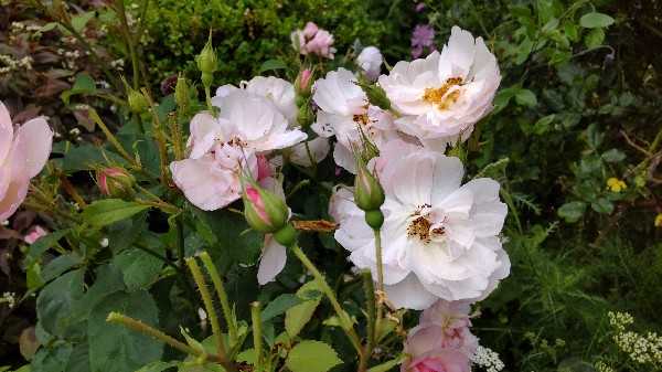 今週、土曜日のMUSIC FAIRに徳永さん♪なにげに番組表見てたらお名前見っけ(*^^*)この時期は、過去映像ですが毎年レイニーブルーを流してくれます。どの時のレイニーブルーかな?コラボのランペって誰?楽しみです♪うわぁ。今日からもう7月なんですね!もう半年以上?日々の早いこと早いこと。子供の行動の一年の3倍速とか?(^^;びっくりします。あ、そうそう。昨日の夕方、だんなさんがイカのゲソをゴロ入れて煮たんですね。こちらでは、ゴロ味噌って言います。醤油で煮るのにね!笑すずの好物です(^-^)すずママに電話したら、ちょうどすずが出て。取りにおいでって言ったんです。で、私は仕事から帰って着替えに2階にいたんです。いやにエイミー吠えるなって思ったら、ここも一緒に来たんですよ。すずん家の前の通りは車通りが多い時間帯だから、遠回りだけど1本上の通りから来たようです。すず、ちゃんとしっかり手を繋いで帰りもその道を帰って行きました。袋小路だからほとんど車通らないからね♪明け方はまた雨。あんなに降らなかったのに(^o^;)それでも、スキャボロフェアはまだまだ咲いてます♪クロッカスローズも♪雨で痛んでるけど、アスピリンローズ♪ルージュピエールドゥロンサール、けっこう日陰になるんだけど、枝数増えて嬉しい♪定番のピエールドゥロンサールは、すごく日当たりがいい場所に植えたんだけど、全然枝数が増えてくれない。きっと、土の下の石?コンクリートが邪魔してるんですね。アーチのポンポネッラ、裏側は咲いてるんですが、アーチの上の花は開く?って感じ。この、ニワフジ。エゴノキを買った園芸農園で見て、だんなさんが気に入って買ったんですが、秋に抜いても抜いても夏になるとこんな感じ。もう、諦めました(^o^;)そして、毎年恒例のノコギリソウを今朝も抜いて歩きました!ノコギリソウガーデンだわ!笑メルカリで、どれだけ抜いて売った?お一人に、10個ずつで10人以上売れたような。それでも、この時期雨の後の葉の繁る事。お散歩から帰って、ついつい庭仕事してしまって、履いてたロングスカートの裾が雨のしずくで濡れちゃった!お洗濯回して出たのも忘れて(^^;ヤバいヤバい!笑可愛いけど増やしてはいけないクラウンベッチも咲いてます。この子もメルカリで、かなり売りました!最初、そんなに増えるとは知らなくて庭に地植えしたんだけど、気付いて大鉢に。庭に植えた物は、取りきれて良かったです(^^;あ、アナベルも咲いて来ました♪ブロッコリーも♪笑あら、また雨降って来ました。隣の空き地の草刈りじいさん、草集めに来てるけど。市のゴミ処理場の予約してるんでしょうね。