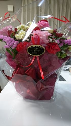 抱えきれないお寿司とお花とケーキを買って帰って来ました(≧▽≦)