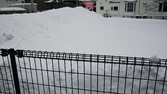 隣の空き地、雪投げ場所になってます。
