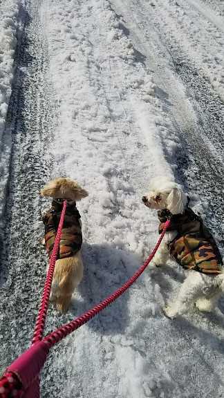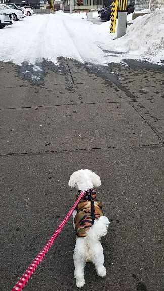 今朝のわんこ散歩、道がガリガリ!