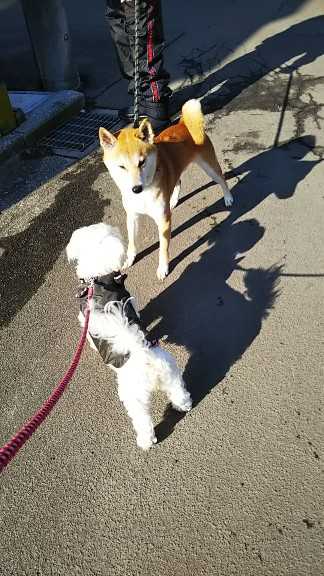今朝のお散歩、メルの大好きなコロちゃんに会えました。