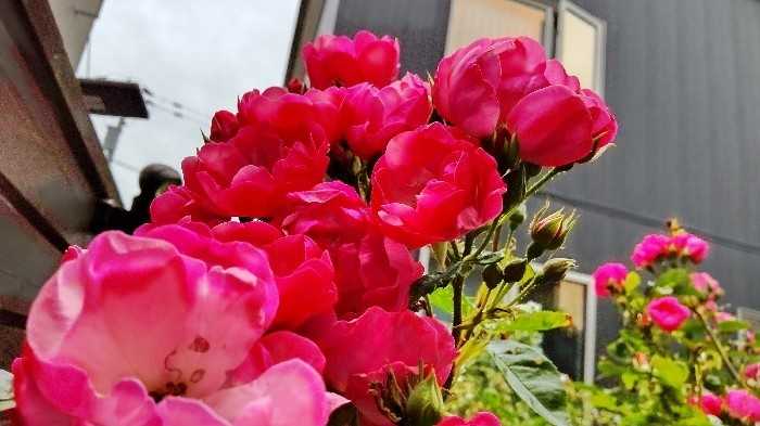 アイビーゼラニウム、雨で葉が傷んでますが、花芽はたくさんあがってます♪