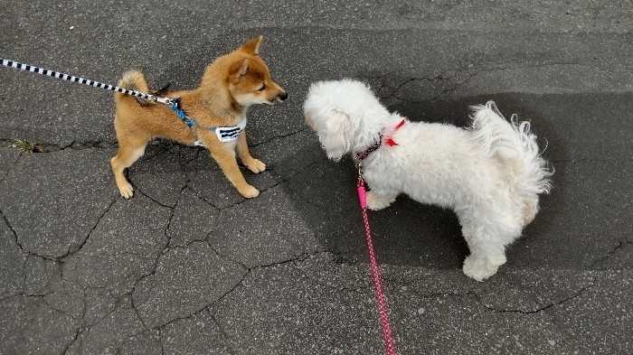 今朝のお散歩で、まだ5ヵ月という柴わんこと遭遇。