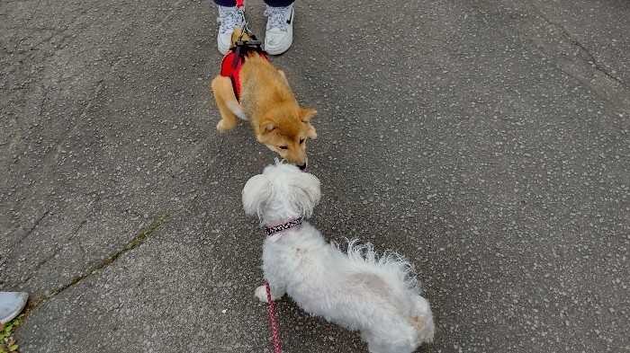 その後、メルの多分、唯一苦手な黒の柴わんこにも会いました。