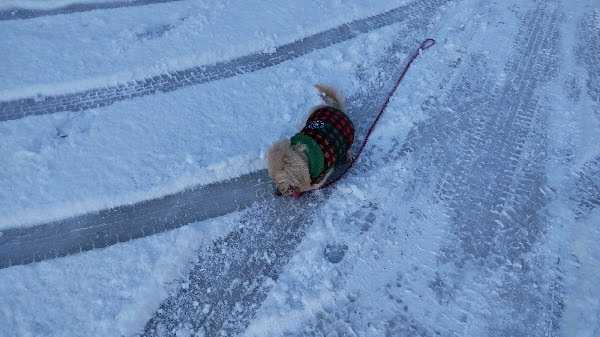 私が、雪かきしてる間、エイミーはずっと手を舐めてました。