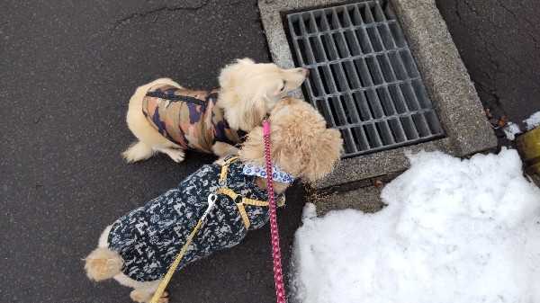 別れて、お散歩コース歩きましたが、所々大きな水溜まり。